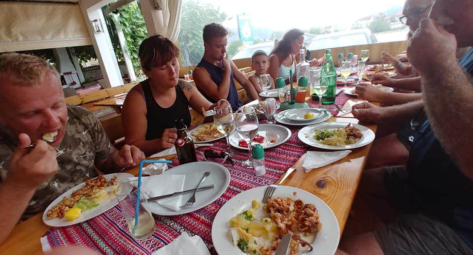 Następnie Opuzen, małe miasteczko🏡na lewym brzegu rzeki Neretwy🌉, 16 km od Kleku ,otoczone polami mandarynek🍊 i fig🌱. Miasto z małym ryneczkiem i niekończąca się ilością przepięknych, kolorowych murali🏤. Miasto słynie z uprawy i przetwórstwa warzyw i owoców (owoce cytrusowe, mandarynki, figi, itp.), Następnie obiad 🍝🍸w słynnej wśród miejscowych Konobie Laterna w miejscowości Metkovic. Laterna to legendarna knajpka w tych okolicach i obowiązkowe miejsce do zaliczenia jeśli zapuścicie się w te strony. Jeśli zabrał nas tam Antonio, to musi to być naprawdę świeża i doskonała kuchnia. Knajpka- galeria w której pełno obrazów malowanych przez właścicieli. A na srodku tarasu drzewo kiwi 🌰🌴