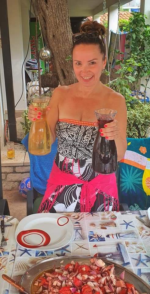 Nie muszę dodawać, że wszystkie produkty z których gotujemy są lokalne i najlepszej jakości ( ryby i owoce morza z Adriatyku , kurczaki i warzywa od gospodarzy, domowa oliwa, morska sól z pobliskiegiej Solany Ston ) , dlatego wystarczą 3 – 4 składniki żeby danie było doskonałe.
