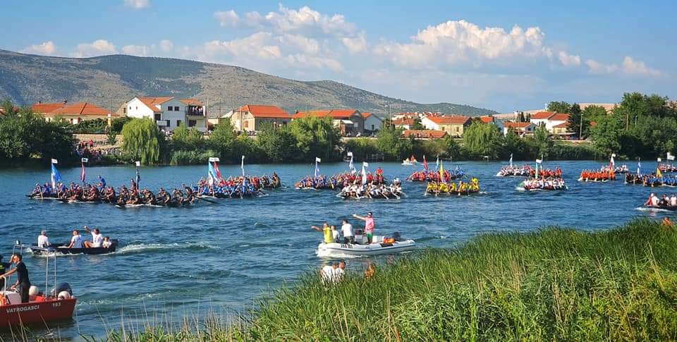 Kolejną atrakcją która na nas czekała był maraton starożytnich łodzi po rzece . To swieto przyciąga corocznie tysiące ludzi w okolice Neretvy i zakończone jest przepłynięciem jednostki na której obecny jest sam prezydent Chorwacji. Normalnie przybywają tu z tej okazji tysiące ludzi, w tym roku z wiadomych względów było trochę skromniej.